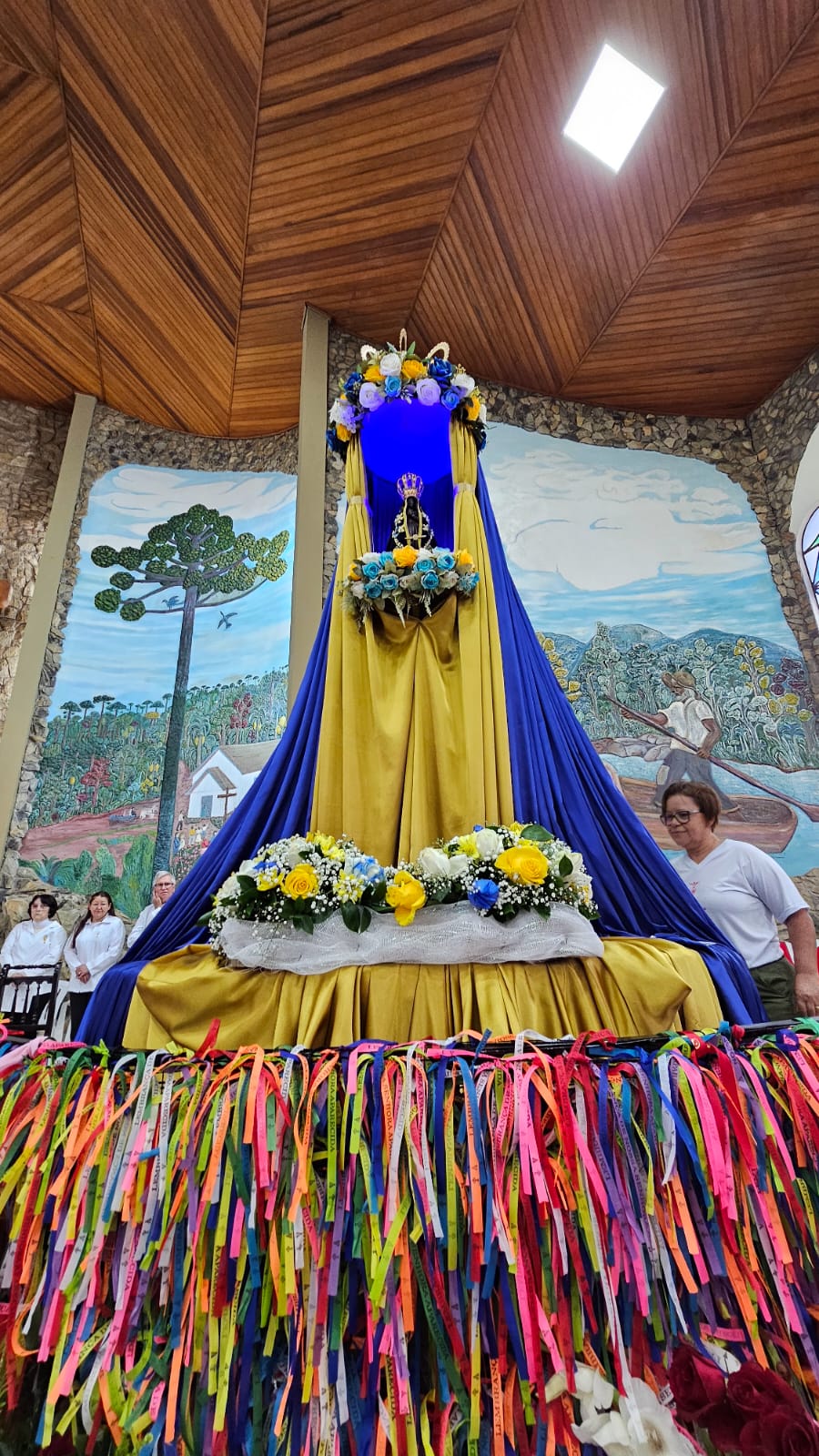 Com orações, cânticos e muita emoção, os devotos manifestaram sua fé e gratidão à Nossa Senhora Aparecida, depositando aos seus pés pedidos e agradecimentos. O clima de fé tomou conta do santuário, que ficou pequeno diante da grande presença dos romeiros e moradores da região.