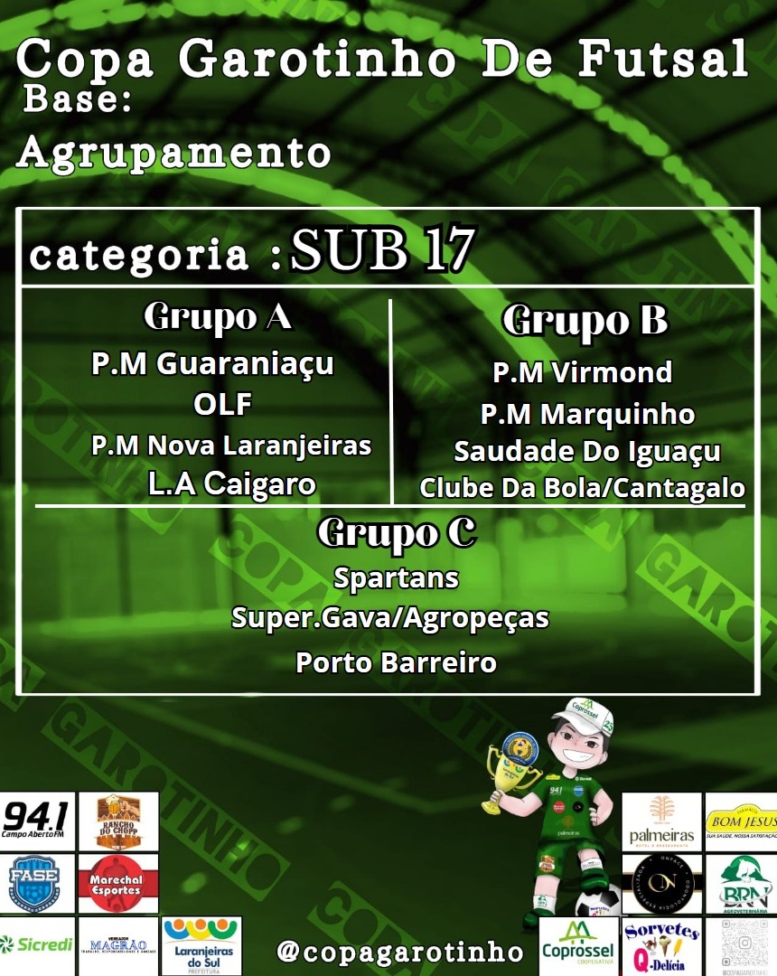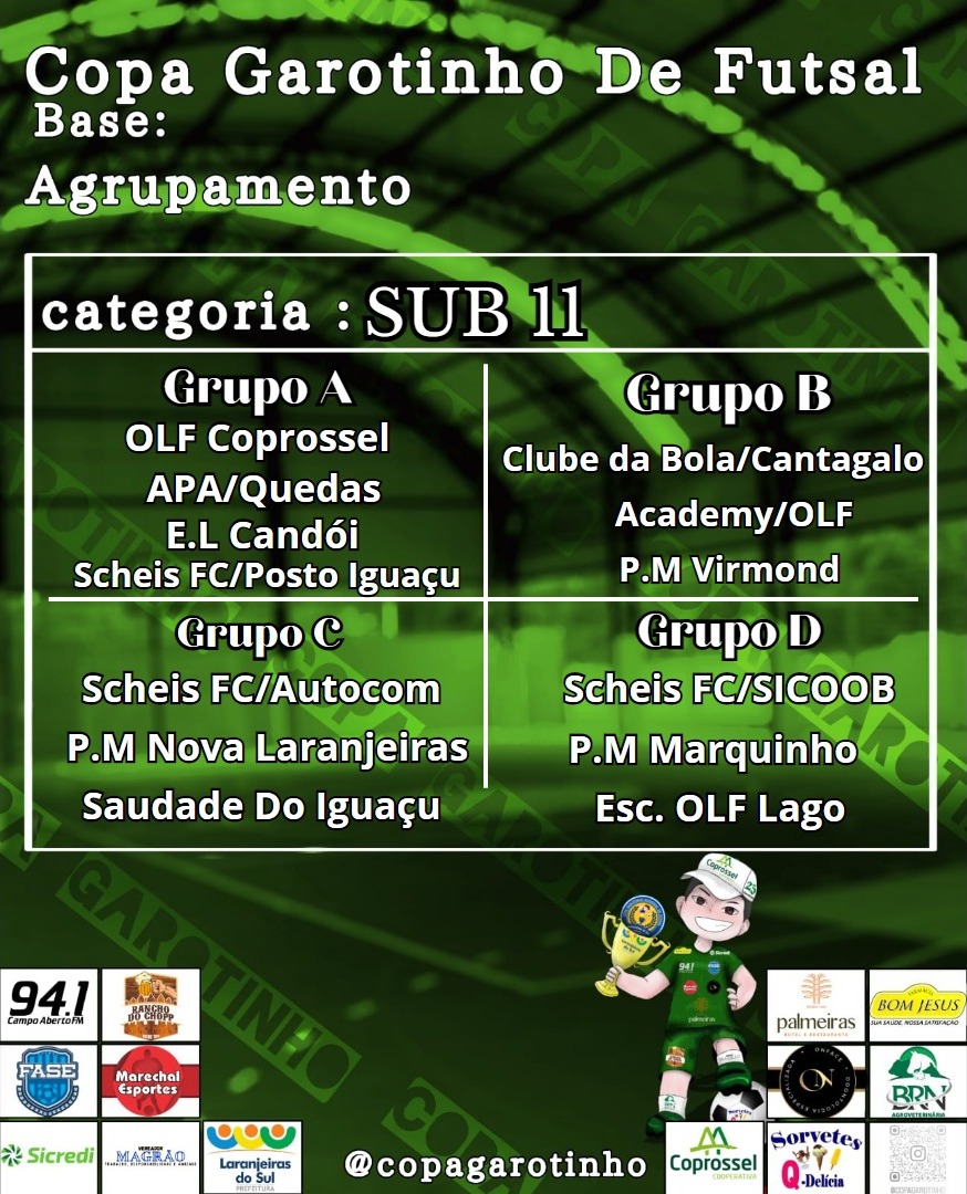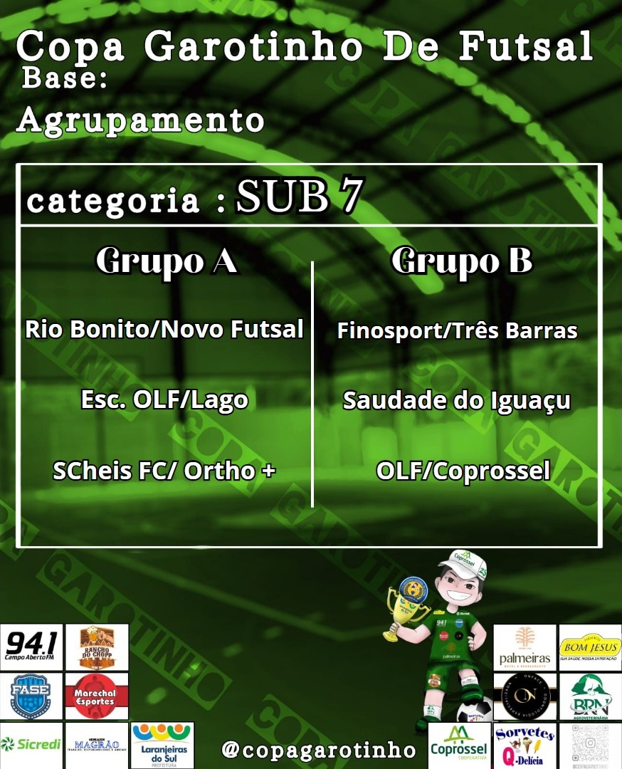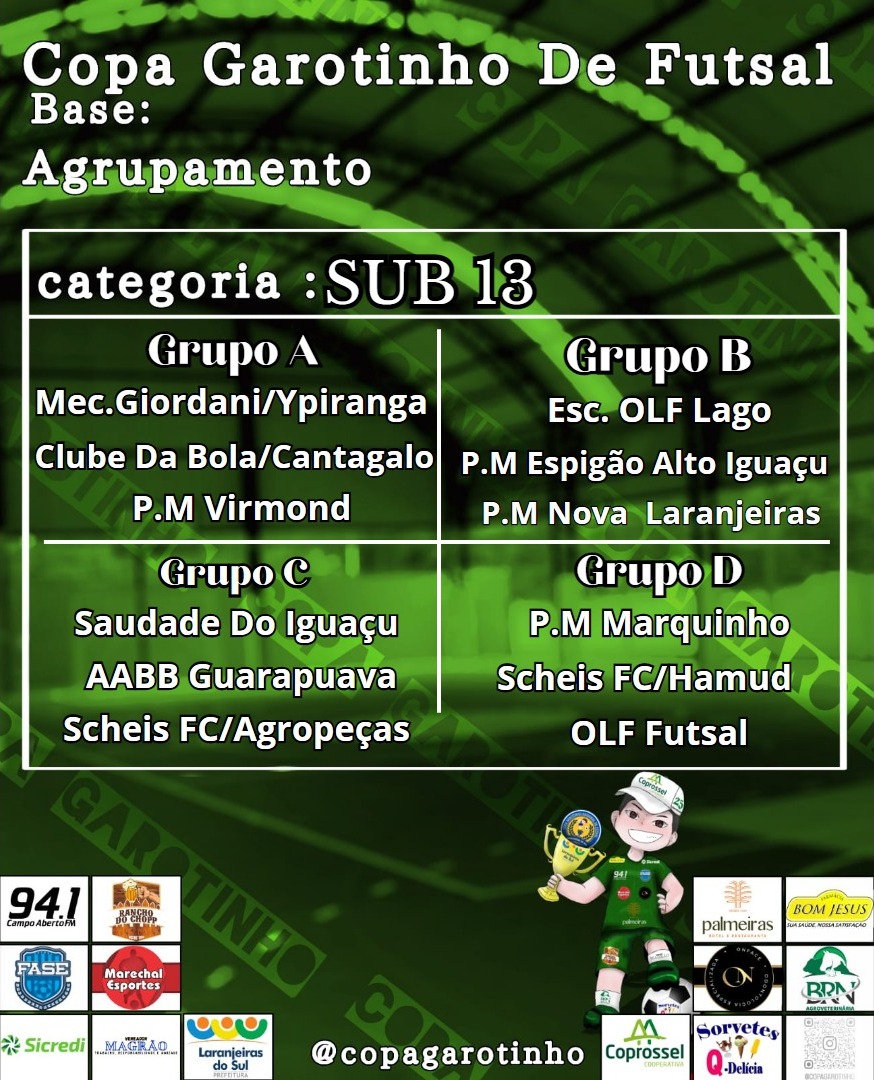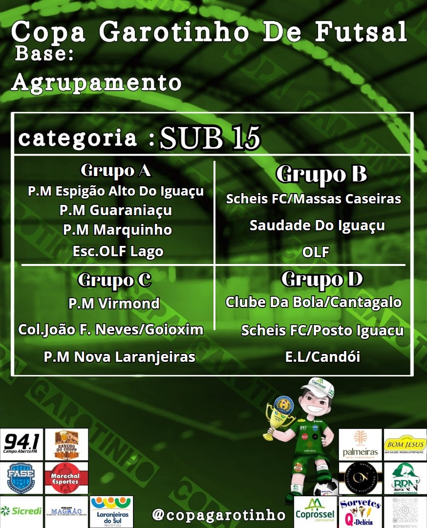 Confira o agrupamento da 1ª fase de todas as categorias na página oficial da competição no instagram @copagarotinho.