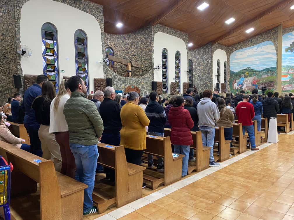 O Santuário Nossa Senhora Aparecida, em Laranjeiras do Sul, viveu na noite desta quarta-feira (8) mais um momento de fé e emoção com a realização do 7º dia da novena em honra à Mãe Aparecida. Centenas de devotos participaram da celebração, que contou com cânticos, orações e momentos de profunda espiritualidade.
