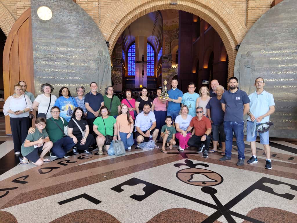 A imagem peregrina de Nossa Senhora Aparecida já está em Laranjeiras do Sul, na Paróquia Sant’Ana. A chegada aconteceu por volta das 5h30, quando os 32 romeiros, sob a condução espiritual do padre Anselmo Freski Oliveira, retornaram de uma viagem tranquila, repleta de fé e oração.
