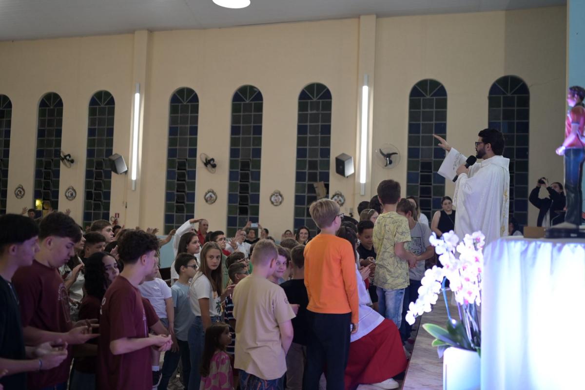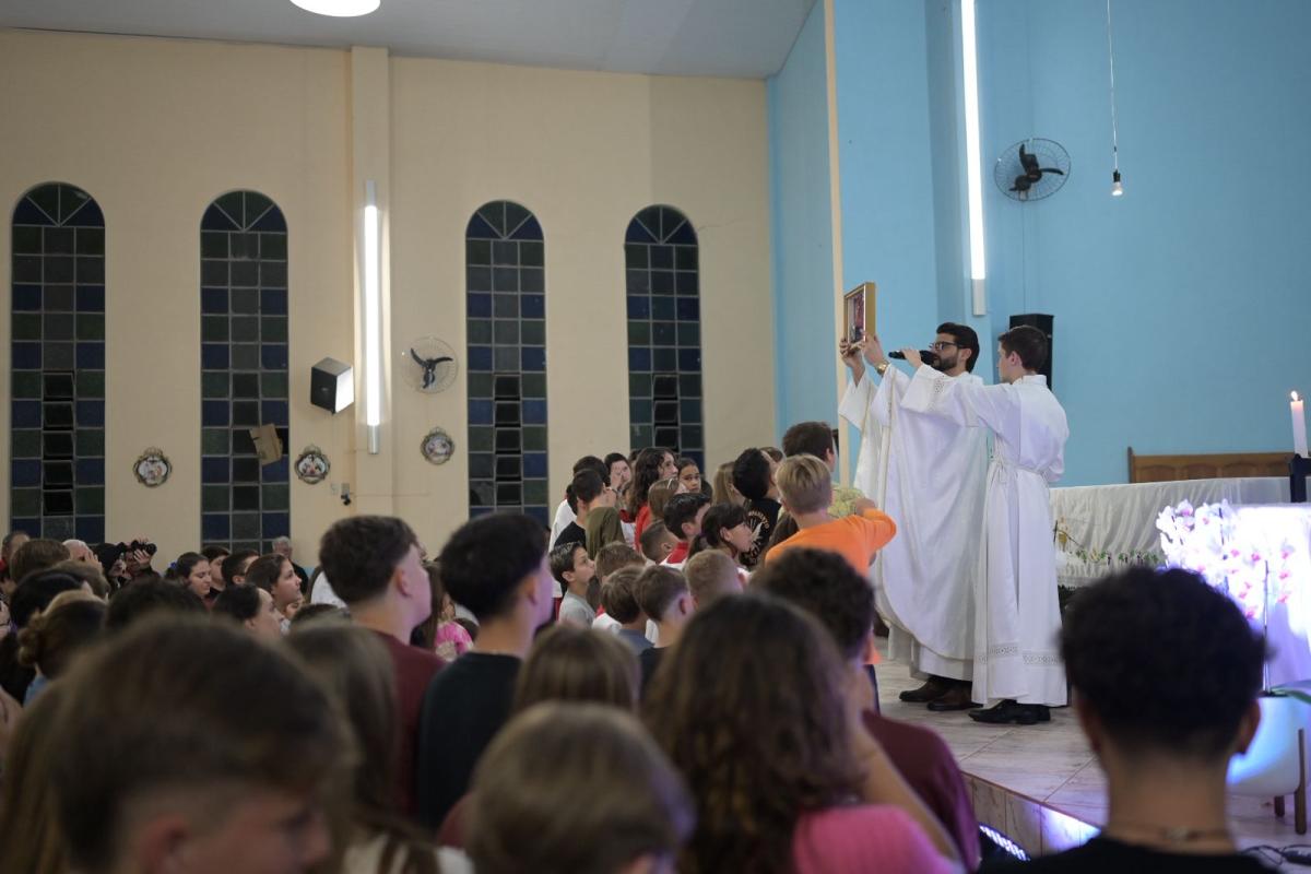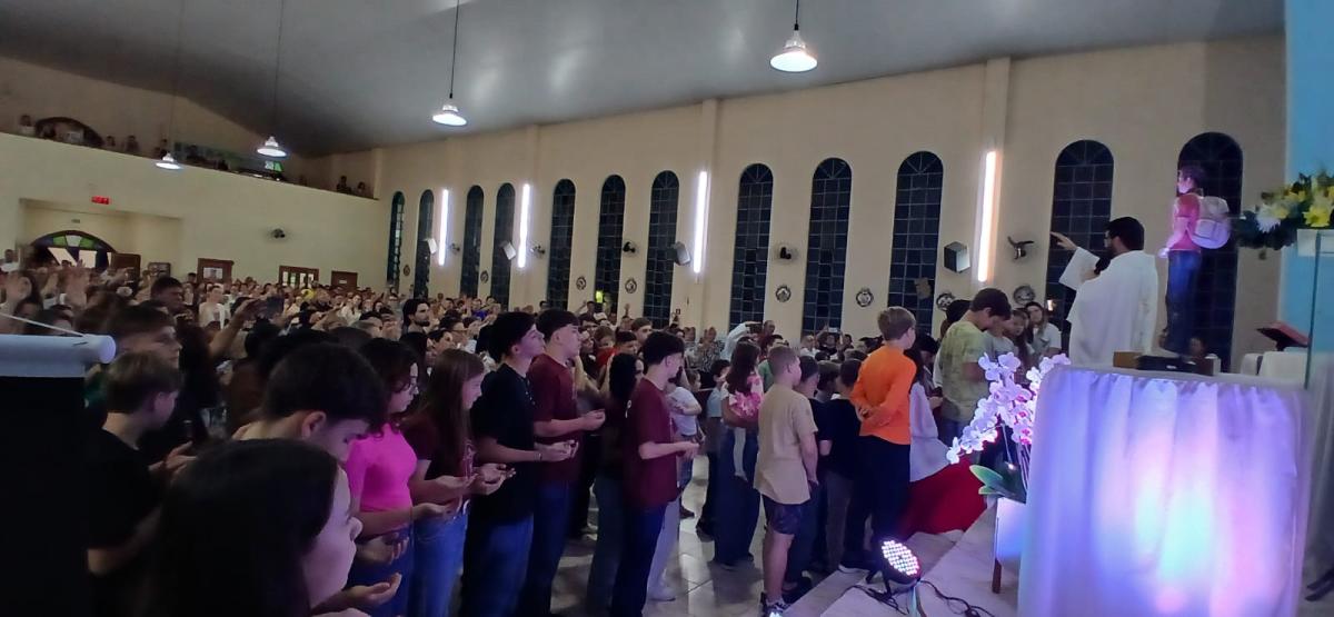 Na noite desta quarta-feira, 15 de outubro, a Comunidade Nossa Senhora do Perpétuo Socorro, do Bairro Cristo Rei, em Laranjeiras do Sul, viveu um momento de profunda fé e emoção durante a Missa com a Exposição das Relíquias de São Carlo Acutis.