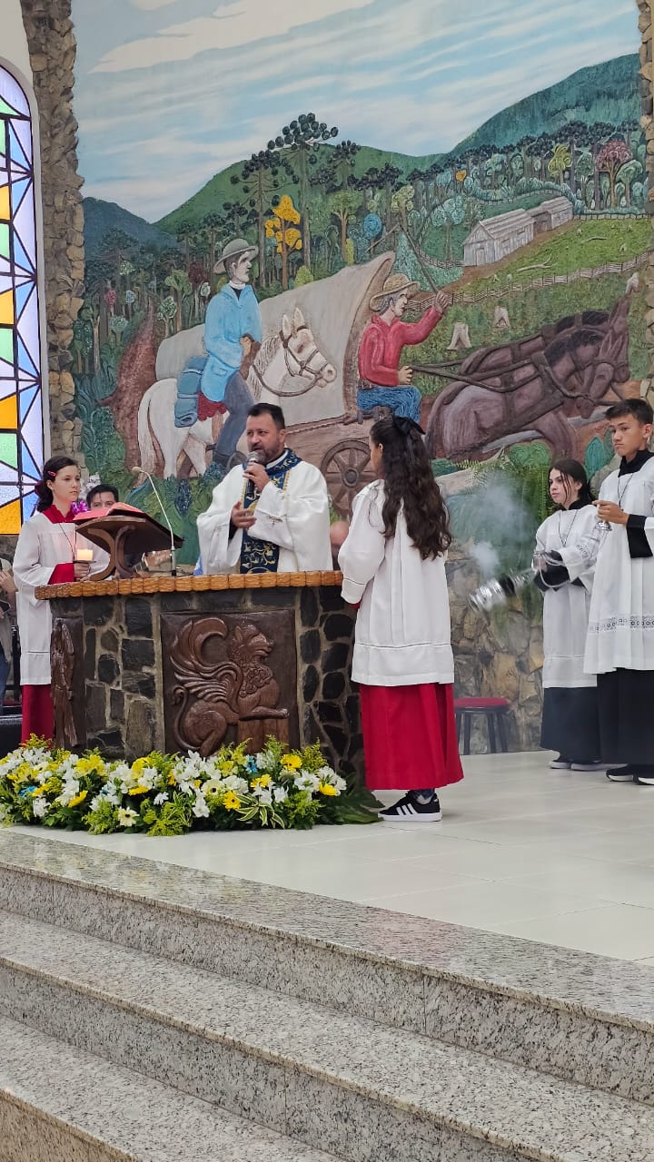 Encerrando as celebrações em honra à Nossa Senhora Aparecida, o Santuário de Laranjeiras do Sul realizou, na noite deste sábado (12), a Missa de Ação de Graças, reunindo centenas de fiéis em um clima de fé, emoção e gratidão. A celebração marcou o fim de uma intensa programação religiosa, que contou com diversas missas, novenas, momentos de oração e a presença de romeiros vindos de várias comunidades da região. Durante a homilia, destacou-se a importância de reconhecer as bênçãos alcançadas por intercessão da Mãe Aparecida e de viver a fé com alegria e compromisso cristão. Ao final da missa, o padre agradeceu a todos os voluntários, equipes de trabalho, ministérios e devotos que colaboraram nas celebrações e na organização da festa, reforçando o sentimento de unidade e comunhão que marcou os dias de devoção no santuário. Com cânticos e aplausos, a comunidade se despediu das festividades deste 12 de outubro renovada na fé e na esperança sob o olhar amoroso de Nossa Senhora Aparecida, padroeira do Brasil.