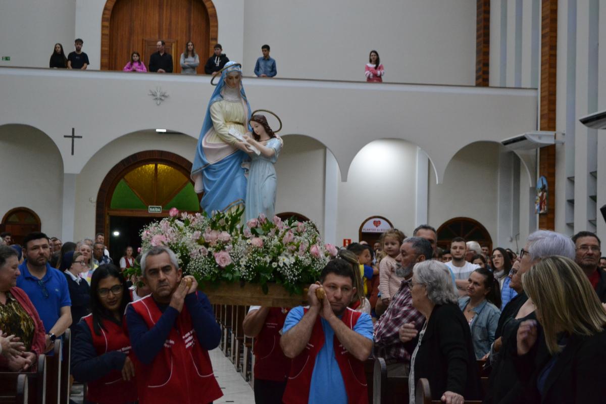 O 6º dia da Novena da Padroeira Sant´Ana, realizado na matriz, na noite deste sábado (22) teve a participação da Paróquia Nossa Senhora do Monte Claro, de Virmond e foi presidida pelo padre Claudemir e Benção especial para os jovens.