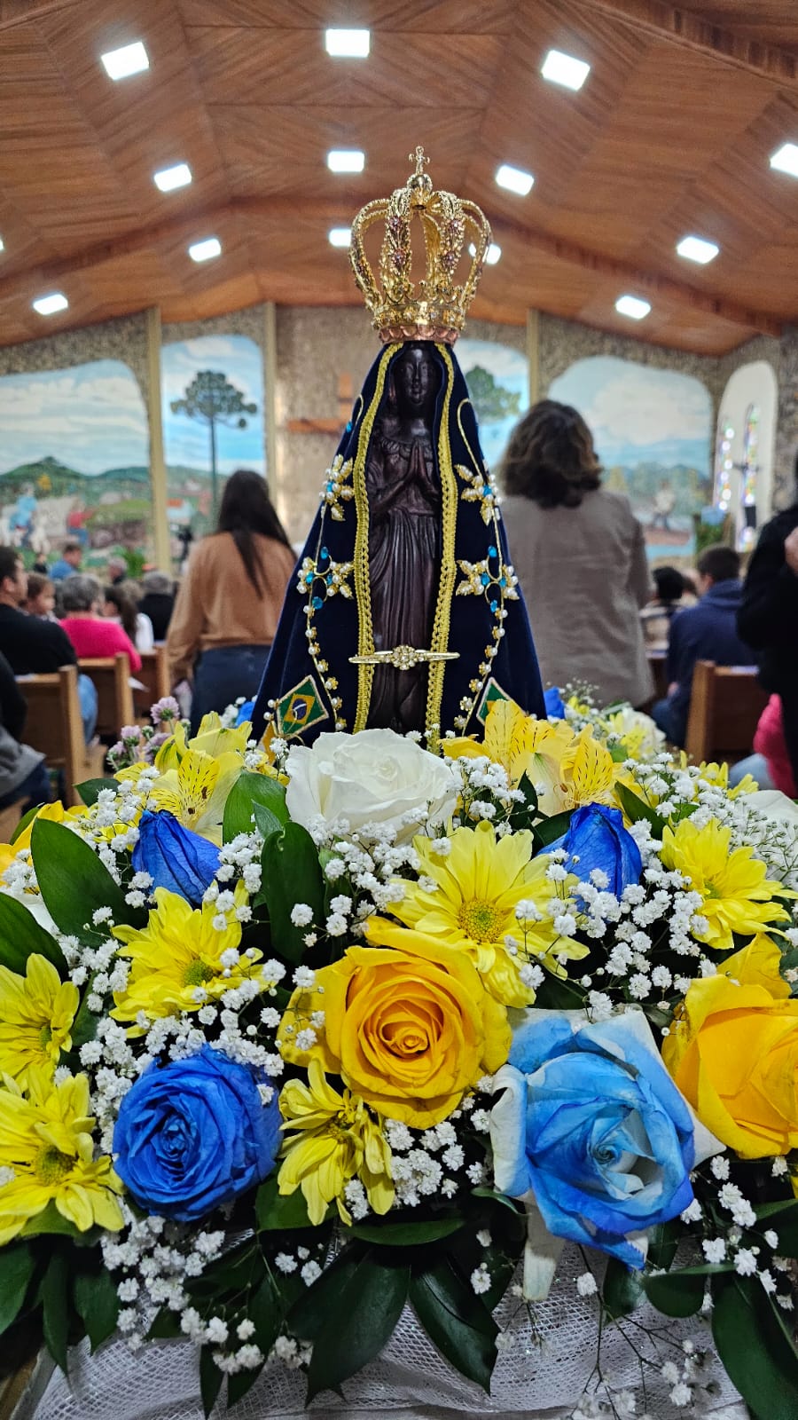 Com orações, cânticos e muita emoção, os devotos manifestaram sua fé e gratidão à Nossa Senhora Aparecida, depositando aos seus pés pedidos e agradecimentos. O clima de fé tomou conta do santuário, que ficou pequeno diante da grande presença dos romeiros e moradores da região.