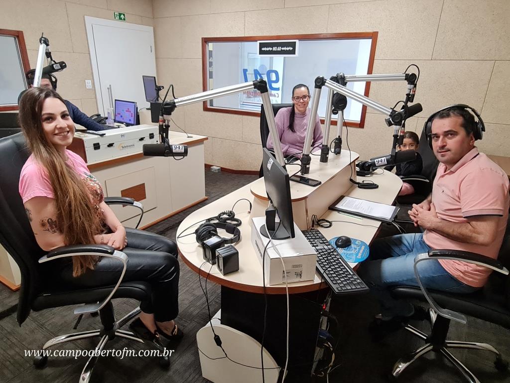 Zaira Araújo da Sala do Empreendedor, e a empreendedora Lidiane Baroni, que se sente beneficiada pelos programas oferecidos pela Sala do Empreendedor e seus parceiros, estiveram visitando a Rádio Campo Aberto, com o objetivo de reforçar o convite para que a população participe do arraiá.