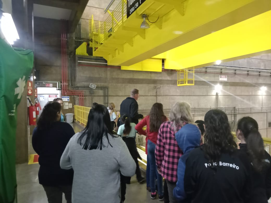 Na continuidade da visita os alunos também conheceram o vertedouro da usina, as comportas e outras instalações externas, desde a central de funcionamento até as turbinas que são responsáveis pela geração da energia elétrica.