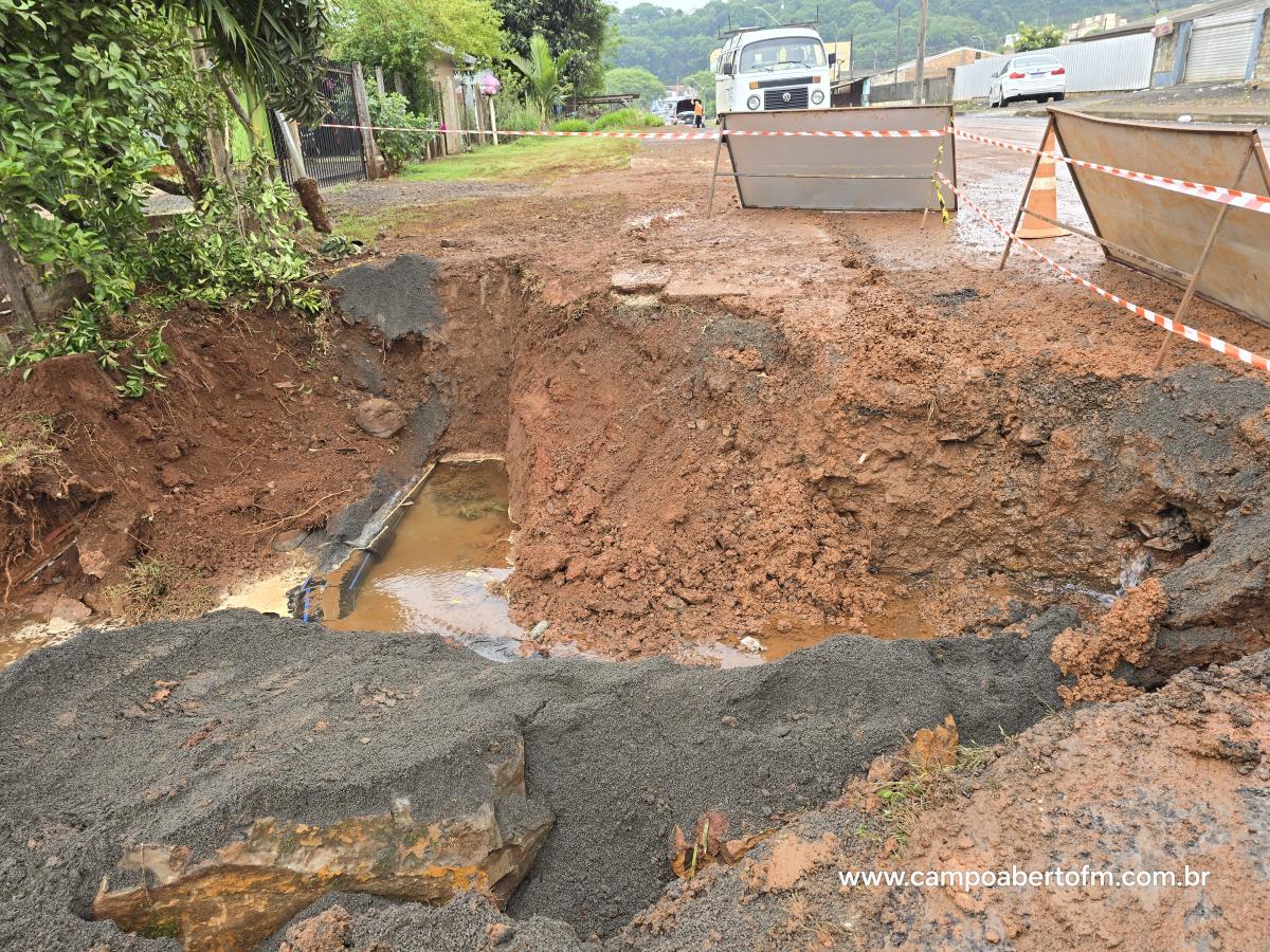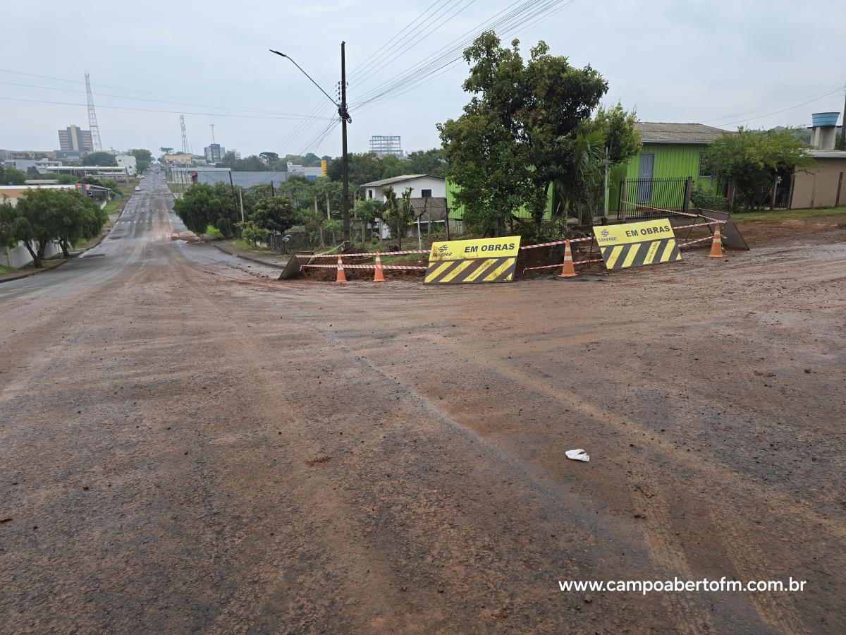 O Rompimento da tubulação na rede de abastecimento de água em Laranjeiras do Sul, causou um grande transtorno as famÃlias com a falta de agua nas residências e comércios de toda a cidade.