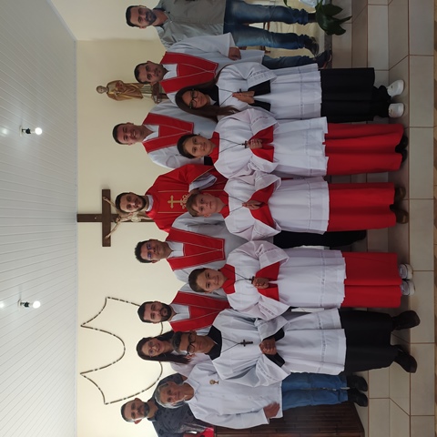 A celebração da missa, às 10:30h, contou com a presença da Caravana Evangelizar da Campo Aberto FM, que foi presidida pelo padre Anselmo Freski. Também teve a inauguração oficial da nova igreja.