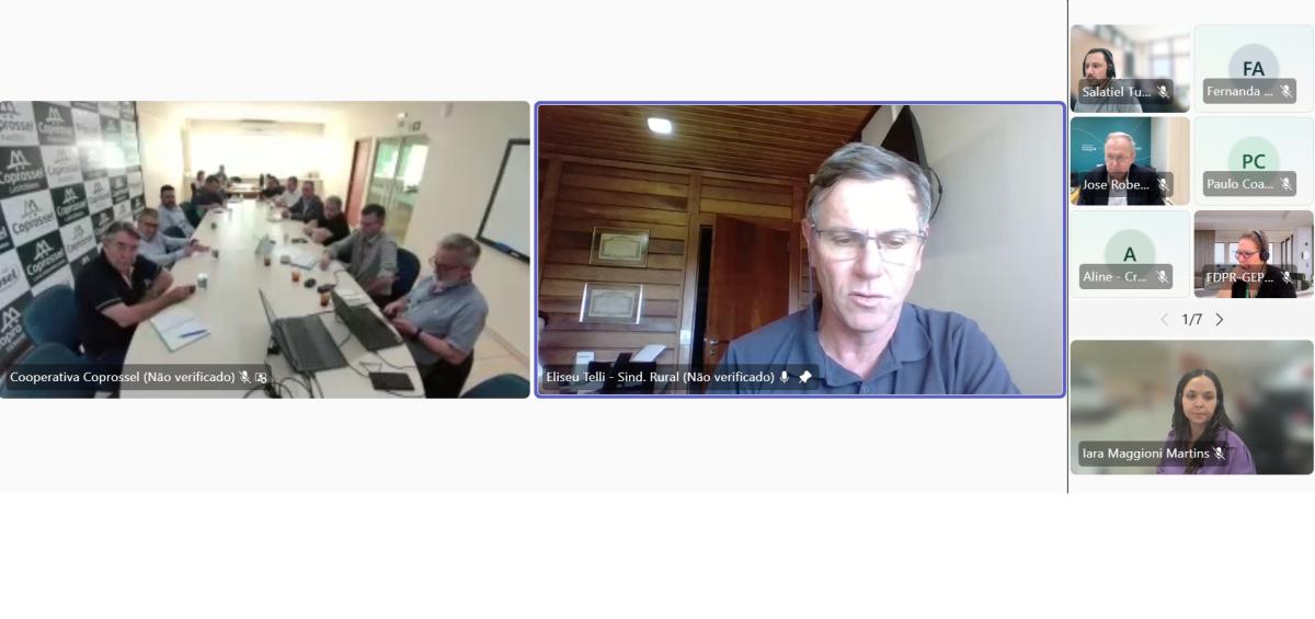 O presidente do Sistema Ocepar, José Roberto Ricken, solicitou que a reunião começasse com relato do que foi verificado nos últimos dias na região. O superintendente da Ocepar, Robson Mafioletti, e o coordenador de comunicação e marketing do Sistema Ocepar, Samuel Milléo Filho, realizaram reuniões com lideranças das cooperativas envolvidas, incluindo Eder Pozzer e Fábio Mueller (Coprossel), Paulo Roberto Fachin e Felipe Patel (Coasul), e Eduardo Bekin (Invest Paraná), para discutir possibilidades de investimentos com apoio da Fomento Paraná.
