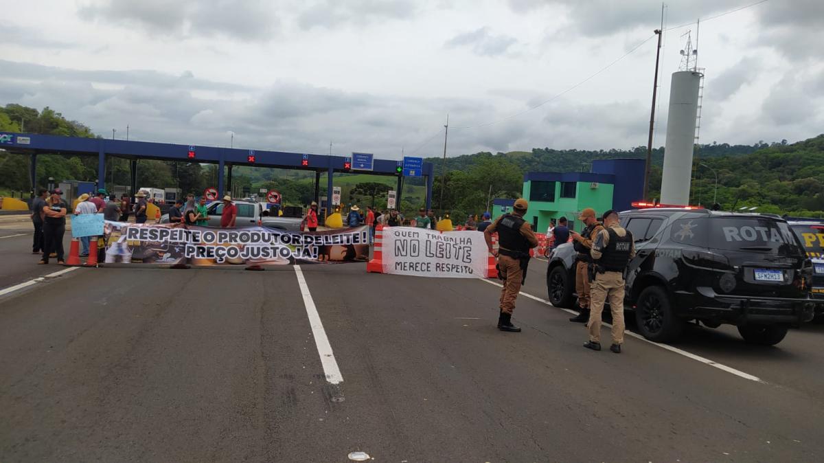 Uma manifestação de produtores de leite ocorreu nesta quarta-feira (5) na praça de pedágio entre Laranjeiras do Sul e Nova Laranjeiras.