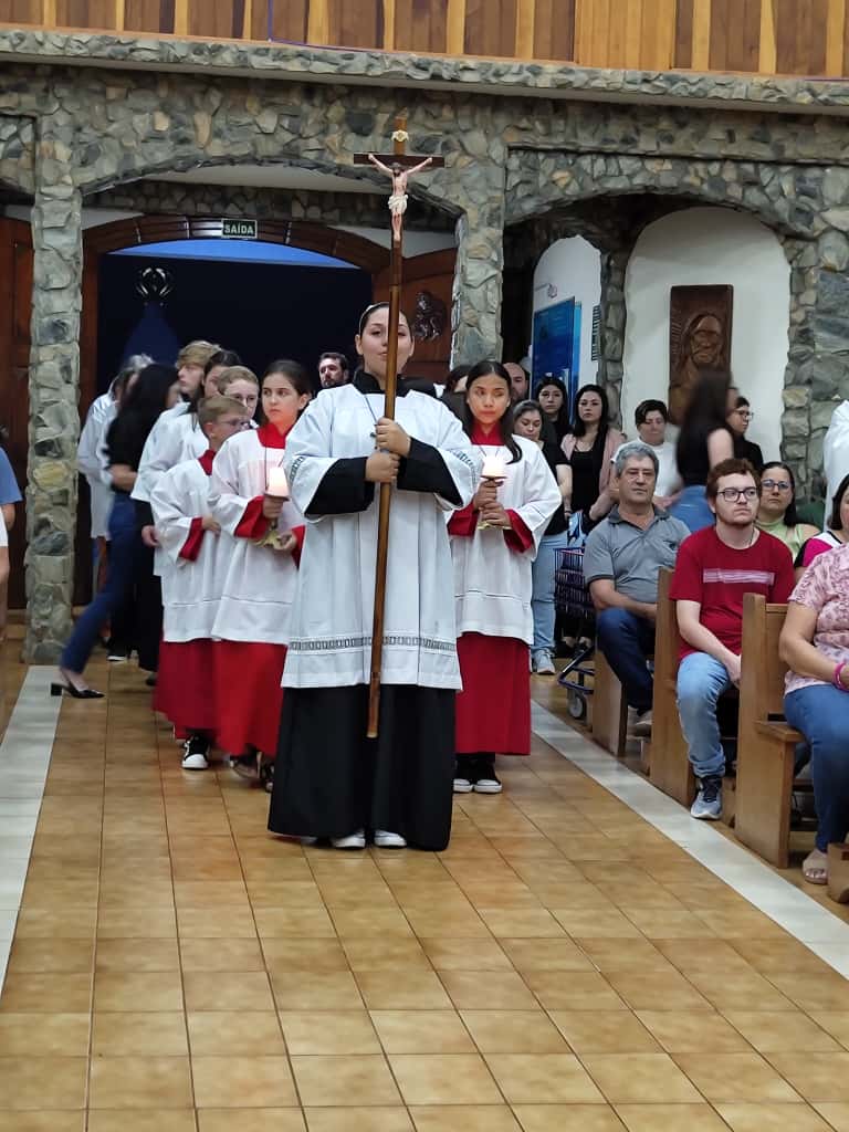 O momento contou com a presença do padre Sebastião, que destacou a importância espiritual desse período de preparação para a grande festa de Nossa Senhora Aparecida, celebrada no dia 12 de outubro.