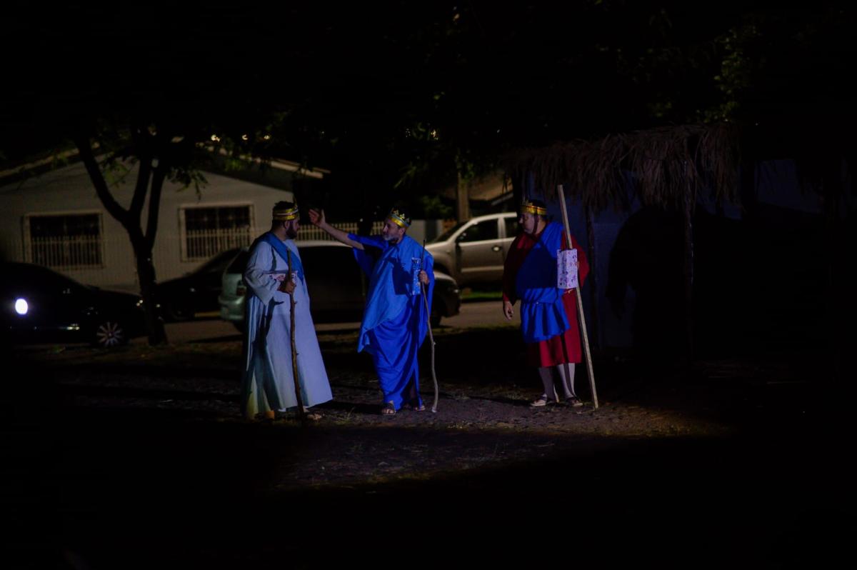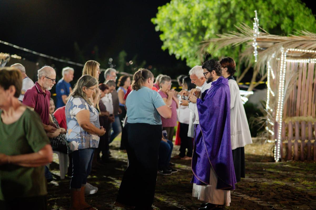 Logo após, a própria comunidade apresentou a encenação do Nascimento de Jesus, retratando de forma simples e real o verdadeiro sentido do Natal. A apresentação contou, inclusive, com a presença de animais vivos, o que tornou o momento ainda mais marcante e envolvente. Em diversos momentos, os fiéis se emocionaram às lágrimas diante da beleza e da espiritualidade da peça.