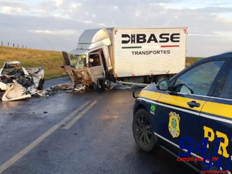 Um caminhão VW/Express seguia sentido Cascavel quando o veÃculo Fiat/Fiorino, invadiu a pista contrária e ocorreu a colisão frontal. O condutor da Fiorino entrou em óbito no local.
