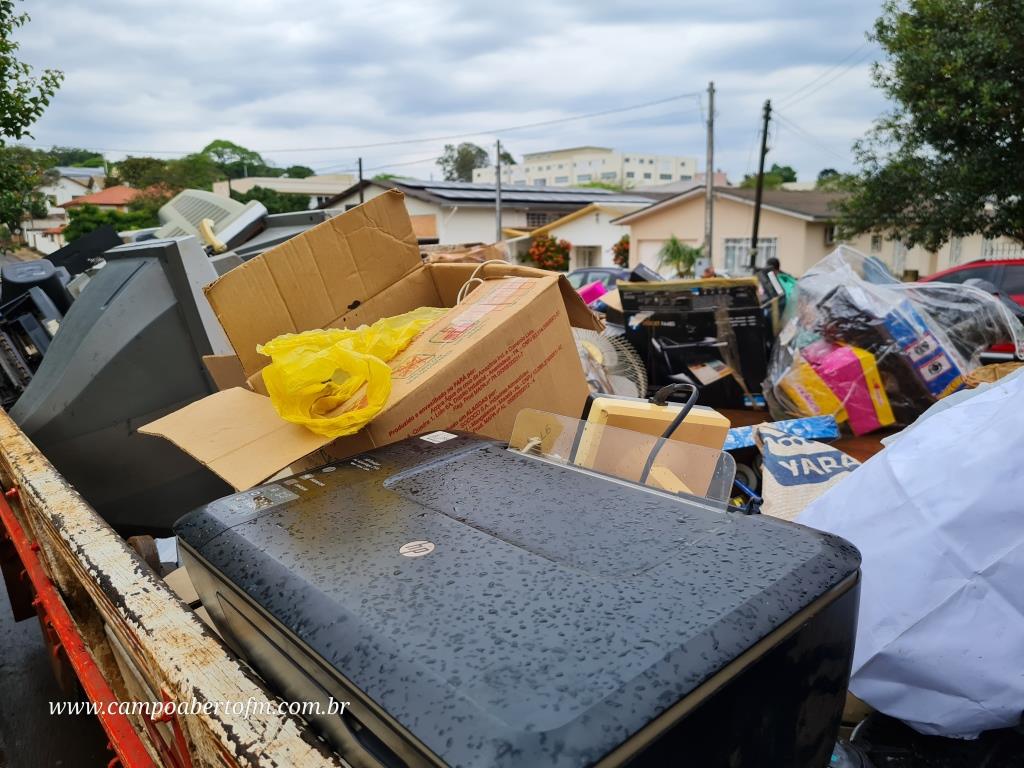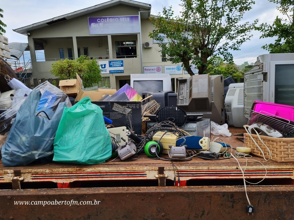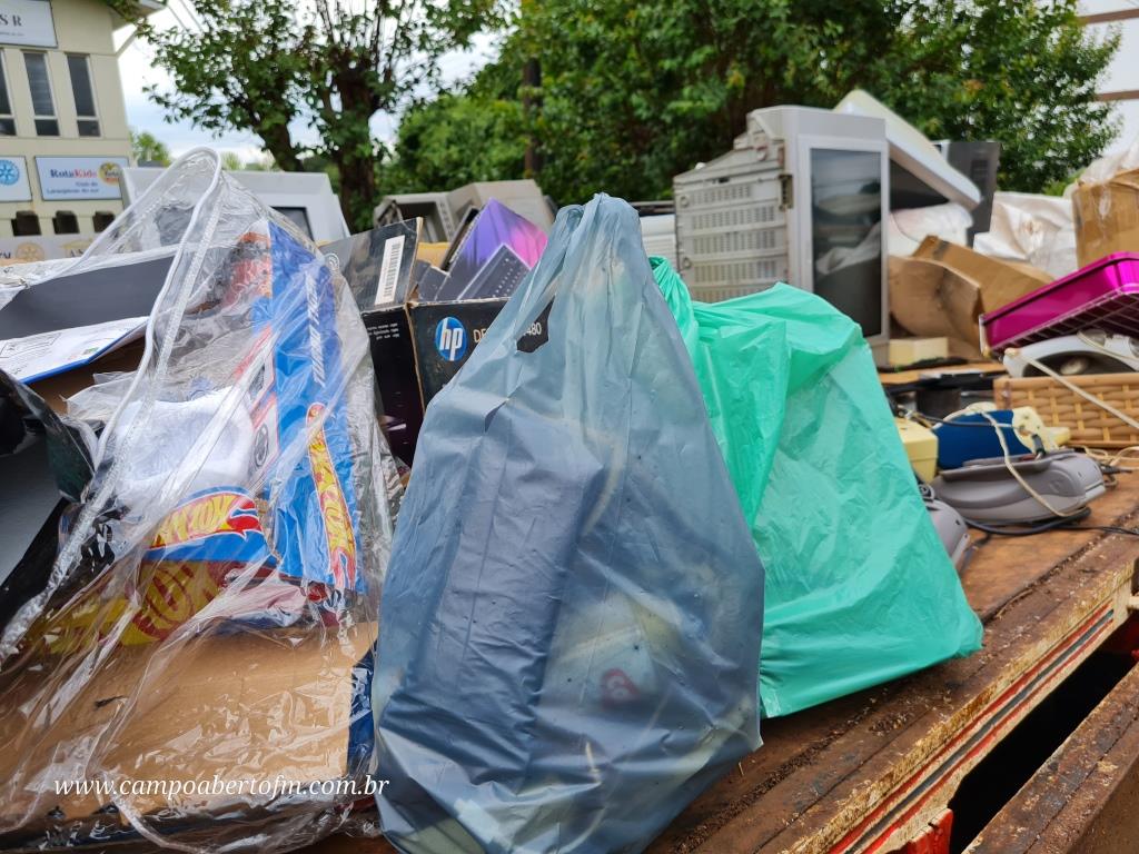 (Na galeria, fotos do recolhimento do lixo eletroeletronico e do bazar)