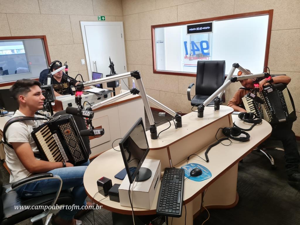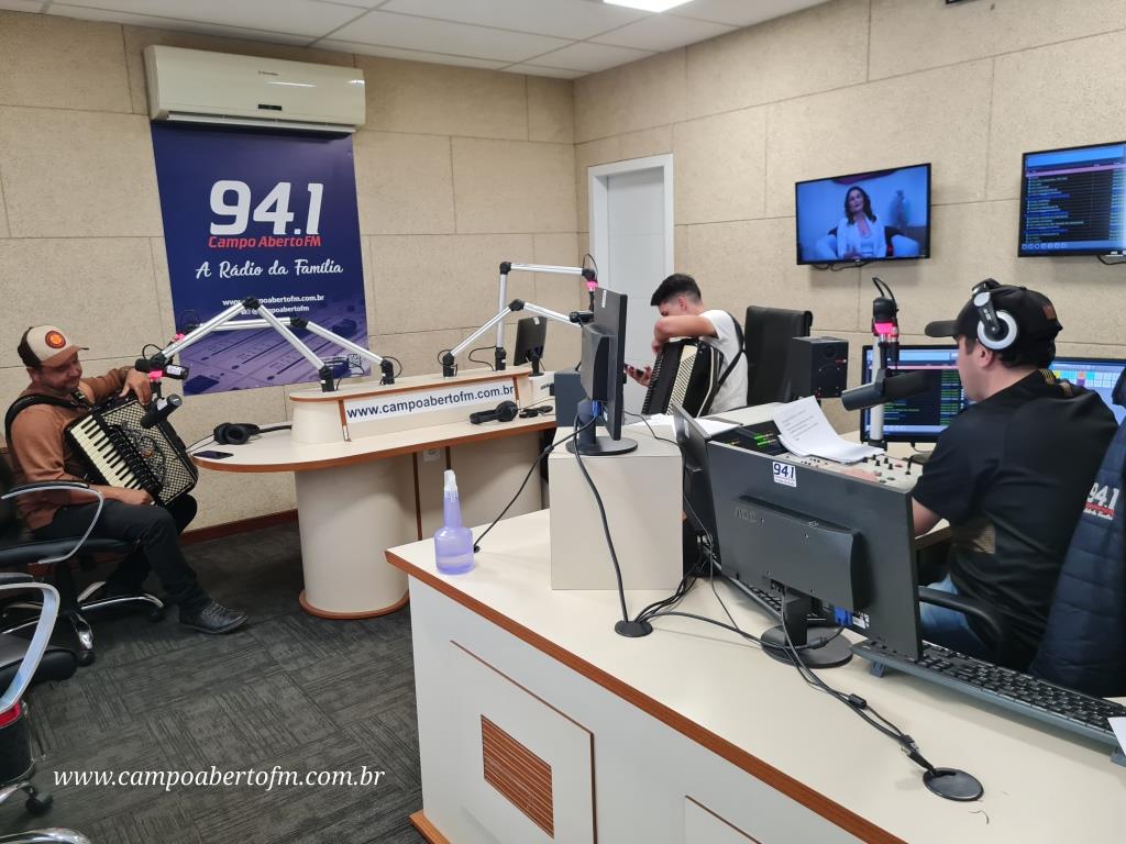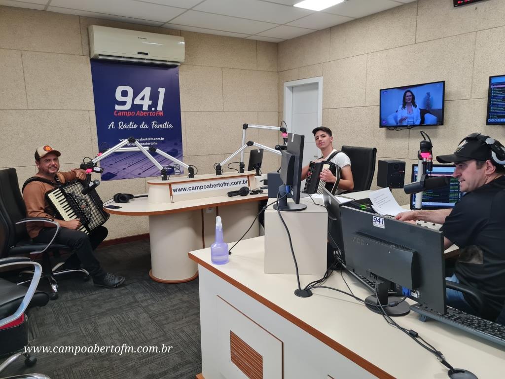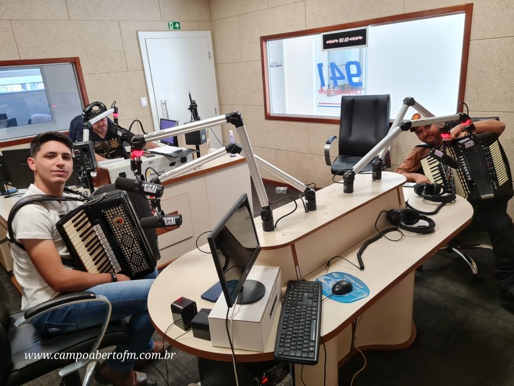 Eleandro Rodrigues, recebeu o artista laranjeirense, acompanhado do também gaiteiro Edson Silva, que é funcionário da Radio Campo Aberto, e tem como Hobby, “Tocar Gaita†em suas horas de folga.