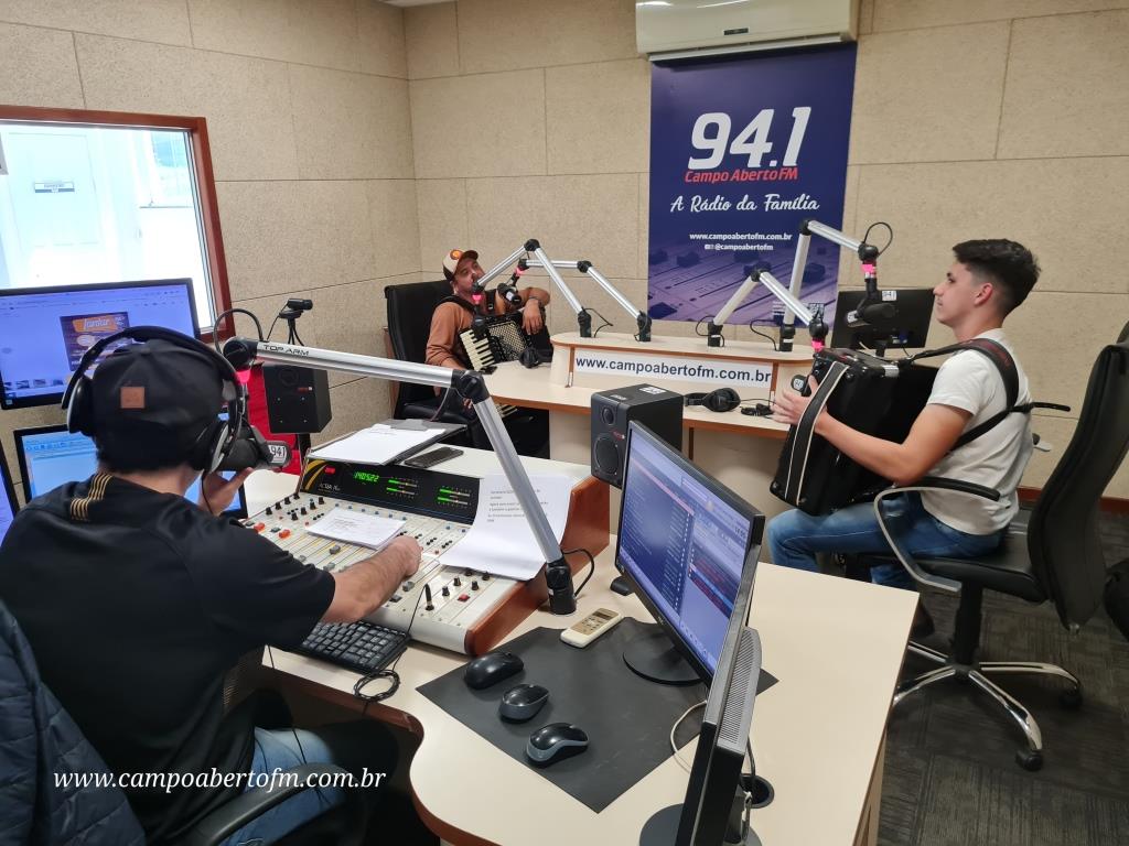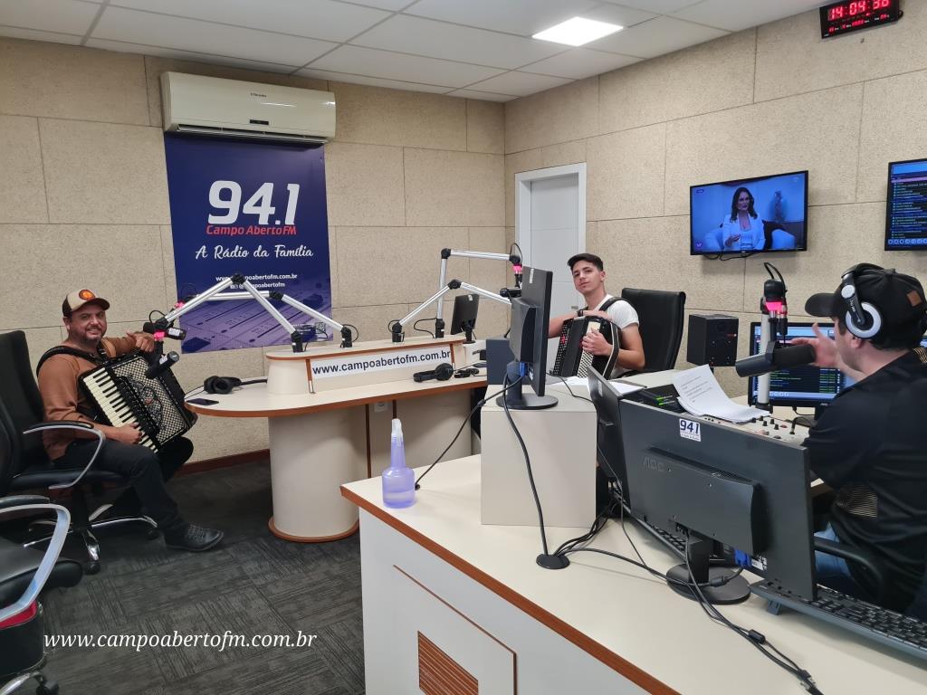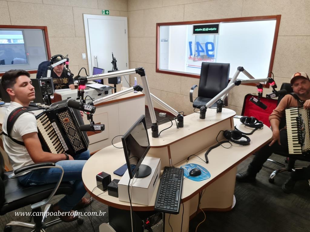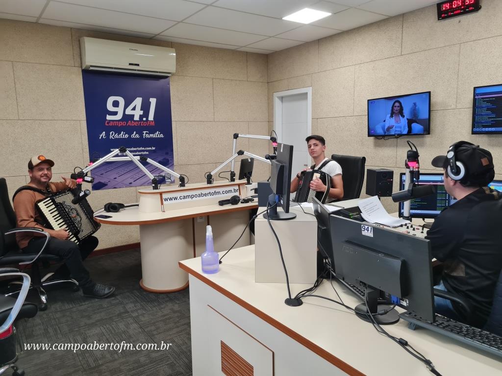 Eleandro Rodrigues, recebeu o artista laranjeirense, acompanhado do também gaiteiro Edson Silva, que é funcionário da Radio Campo Aberto, e tem como Hobby, “Tocar Gaita†em suas horas de folga.