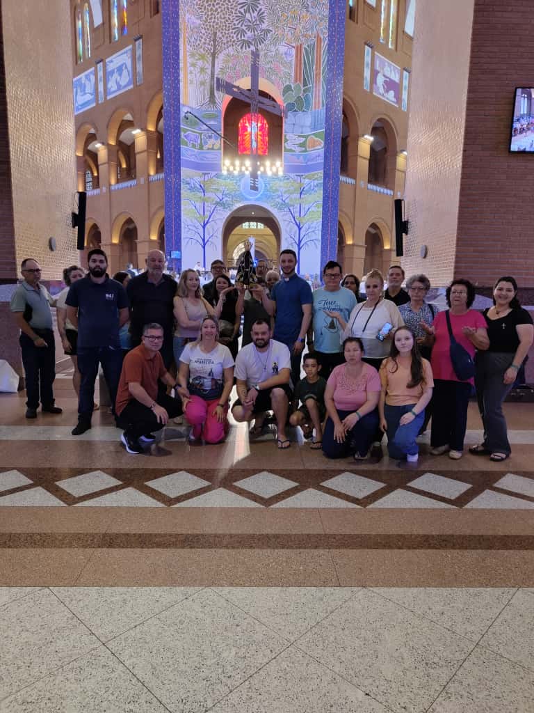 A imagem peregrina de Nossa Senhora Aparecida já está em Laranjeiras do Sul, na Paróquia Sant’Ana. A chegada aconteceu por volta das 5h30, quando os 32 romeiros, sob a condução espiritual do padre Anselmo Freski Oliveira, retornaram de uma viagem tranquila, repleta de fé e oração.