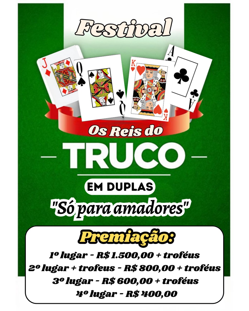 3º lugar – R$ 600,00 + troféus