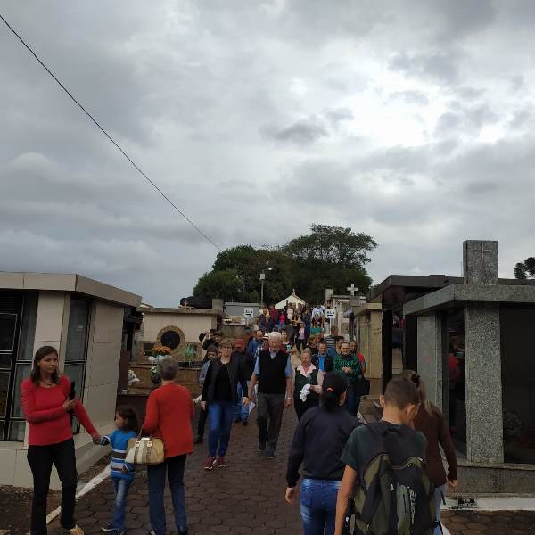 Mesmo com o tempo instável a movimentação está sendo grande no Cemitério Municipal de Laranjeiras do Sul na manhã desta quinta-feira, 2, por conta do Dia de Finados. A missa foi celebrada no local, às 8:30 horas, pelo padre Sebastião Goulart.