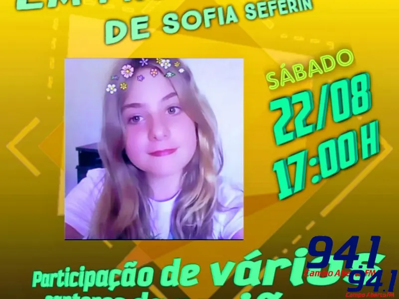 Acontece no próximo sábado, 22 de agosto, às 17 horas no Lindágua emLaranjeiras do Sul a Live Solidária, em prol do tratamento de Sofia Seferin que sofreu um acidente e teve 55% do seu corpo afetado com queimaduras de 3º grau.