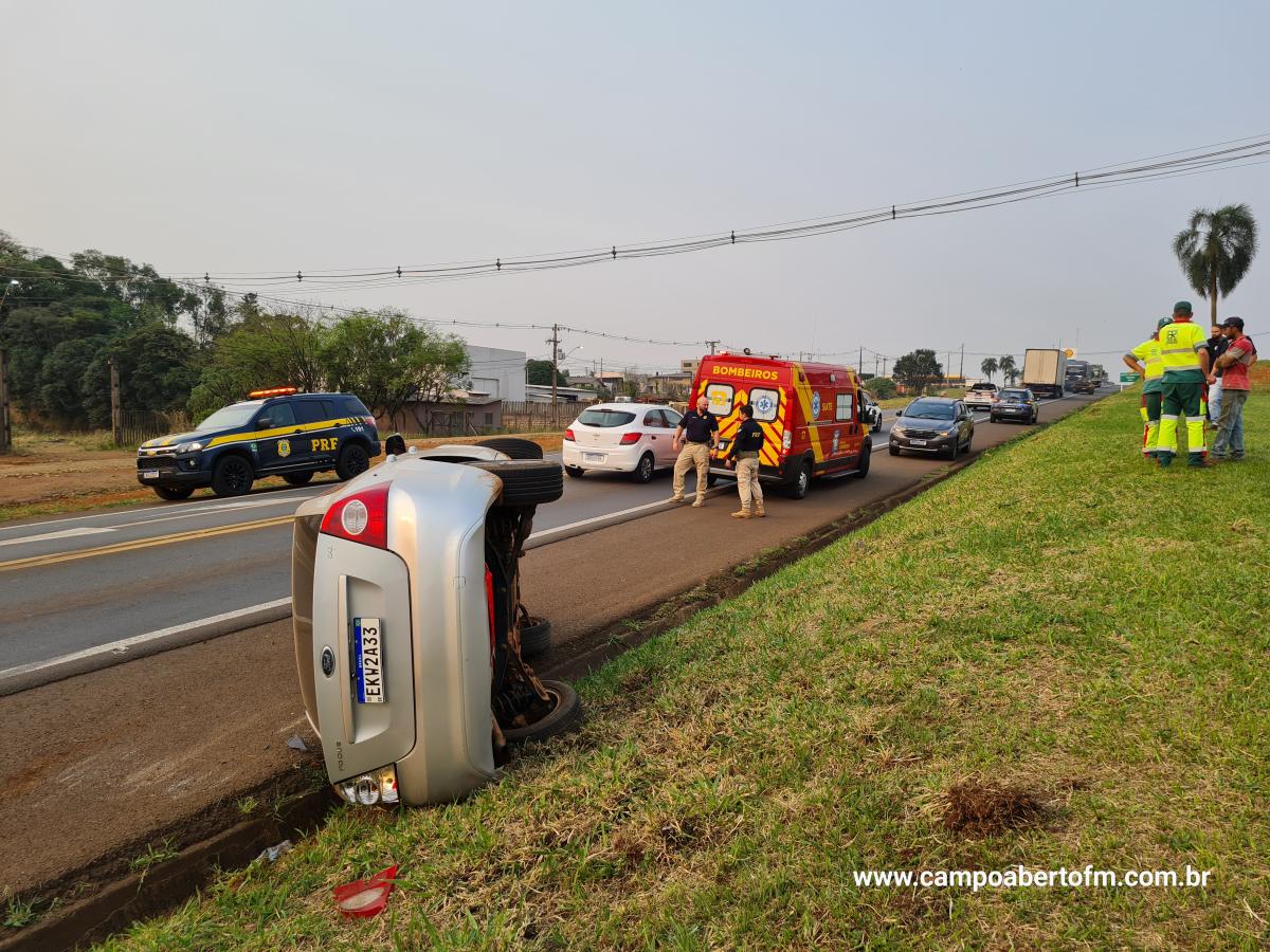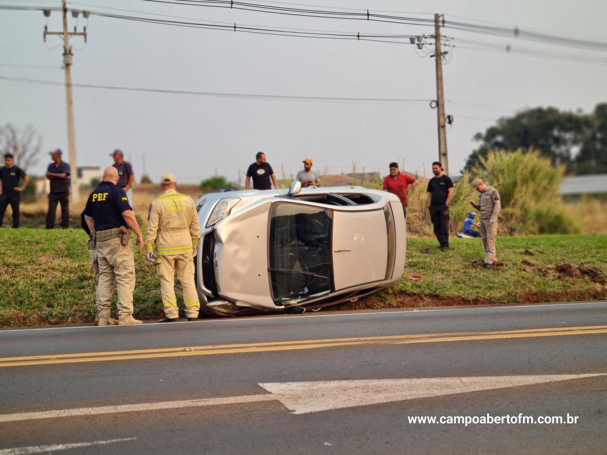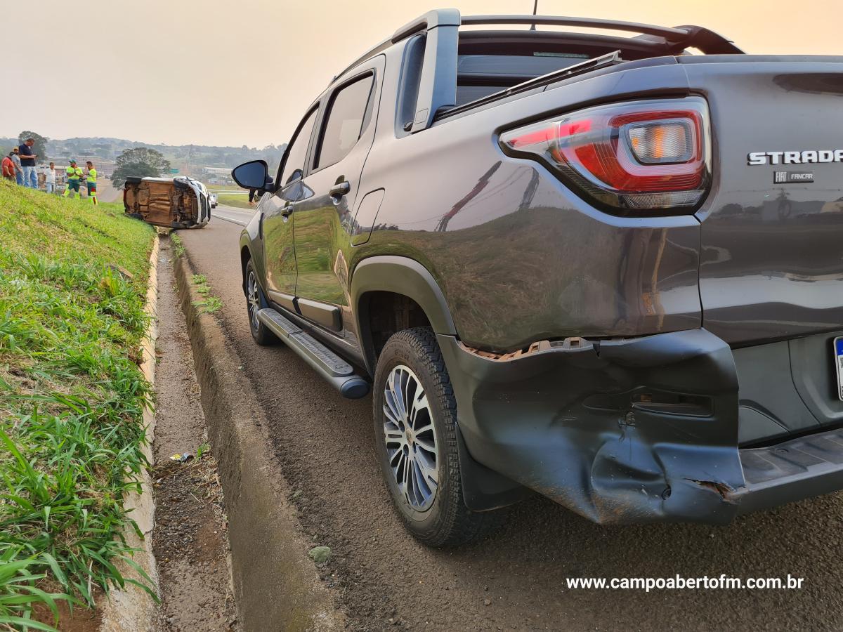 De acordo com informações do condutor de um dos veÃculos envolvidos, um Fiat Strada com placas de Engenheiro Beltrão, o qual era ocupado por duas pessoas, motorista 33 anos e passageiro, o mesmo seguia sentido Guarapuava, quando percebeu a aproximação de um veÃculo Ford Focus, momento em que o condutor do focus tentou ultrapassar o Fiat Strada, acabou batendo no parachoque traseiro. Com o impacto o Ford Focus rodou na pista e acabou capotando ficando fora da pista.