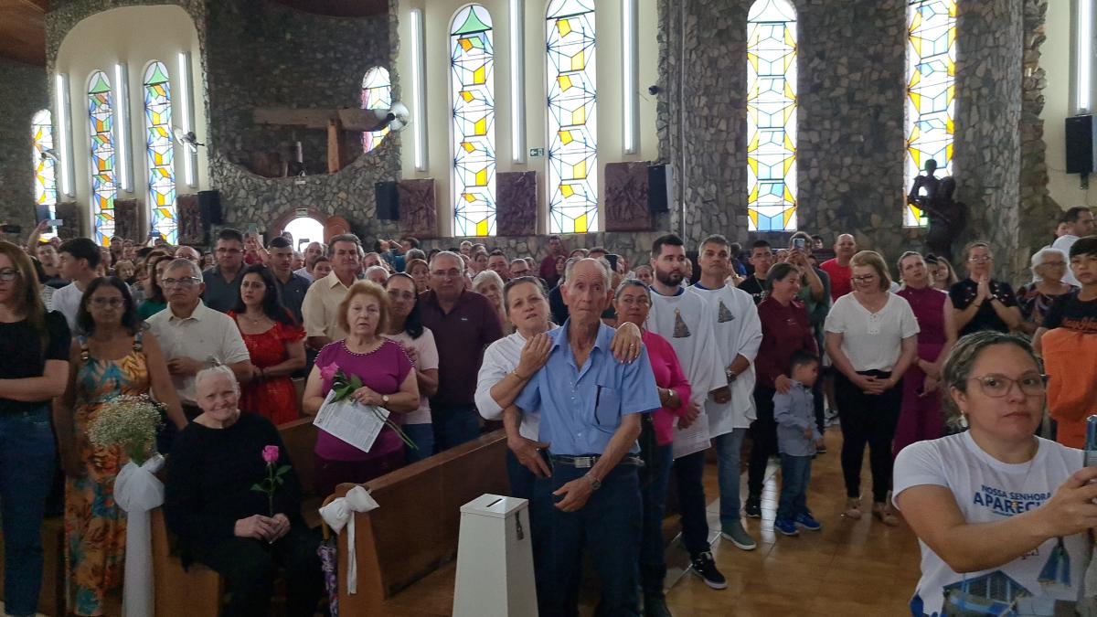 Neste dia 12 de outubro, está acontecendo em várias comunidades da região, a Festa em Honra a Nossa Senhora Aparecida. No Santuário de Laranjeiras do Sul, as celebrações tiveram público recorde de fiéis, que participaram como forma de festejar, homenagear e agradecer pelas graças alcançadas por interseção de Nossa Senhora Aparecida. Durante a missa que foi celebrada as 10h, pelo Padre Sebastião Gulart, que teve como co-celebrante o Padre Anselmo Freski, e a equipe da Rádio Campo Aberto como responsável pela Liturgia. O momento mais emocionantes da celebração foi a coroação da Padroeira, sendo que com igreja lotada, inúmeros fiéis acompanharam o momento, com orações e cânticos de louvor a Nossa Senhora Aparecida.
