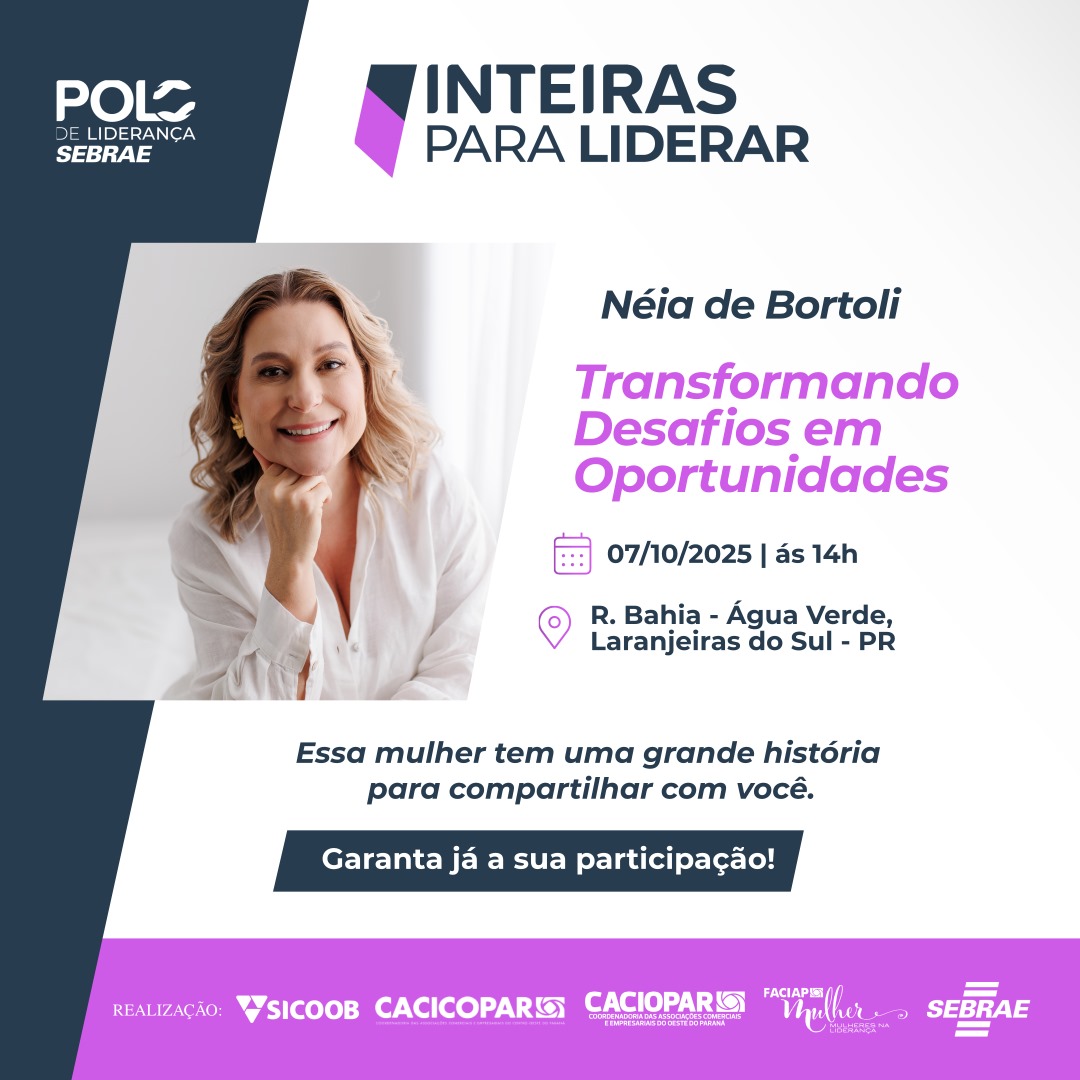 Será uma tarde de aprendizado, troca e inspiração, com a palestra de Neia de Bortoli, que vai compartilhar experiências e conhecimentos valiosos para que as mulheres se sintam confiantes e prontas para liderar sua própria jornada.