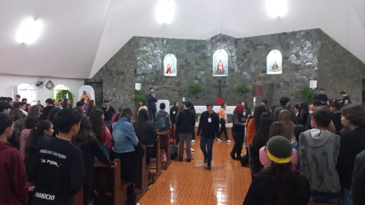 Sábado, 26 de agosto, aconteceu mais um retiro de formação para os jovens e adolescentes que estarão recebendo o sacramento da Crisma em 2024. O encontro aconteceu na comunidade do Campo Mendes e reuniu mais de 380 jovens e adolescentes. Dentro da programação tivemos palestras, oração, partilha e muita diversão para os participantes.