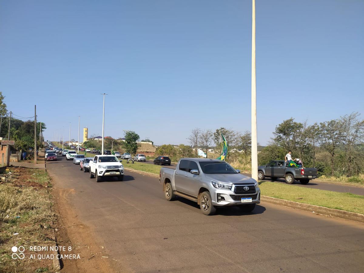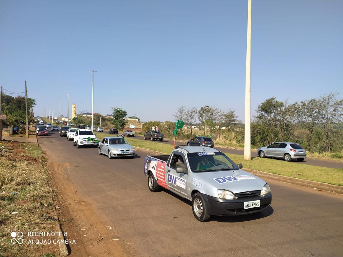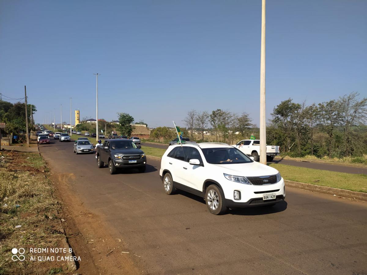 Em Laranjeiras do Sul, a carreata iniciou na região do Lago 2, por volta das 15 horas, passando por toda a extensão da Avenida Santos Dumont, até a PR 158, e por outras ruas da cidade.