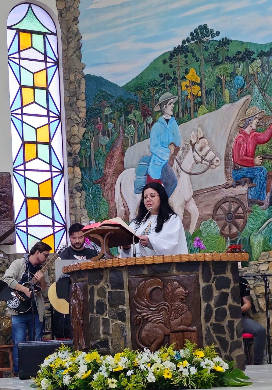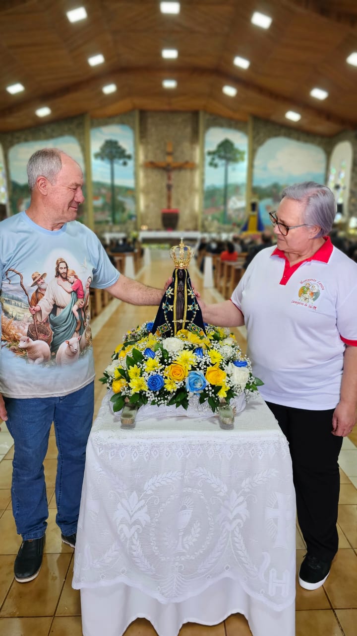 Encerrando as celebrações em honra à Nossa Senhora Aparecida, o Santuário de Laranjeiras do Sul realizou, na noite deste sábado (12), a Missa de Ação de Graças, reunindo centenas de fiéis em um clima de fé, emoção e gratidão. A celebração marcou o fim de uma intensa programação religiosa, que contou com diversas missas, novenas, momentos de oração e a presença de romeiros vindos de várias comunidades da região. Durante a homilia, destacou-se a importância de reconhecer as bênçãos alcançadas por intercessão da Mãe Aparecida e de viver a fé com alegria e compromisso cristão. Ao final da missa, o padre agradeceu a todos os voluntários, equipes de trabalho, ministérios e devotos que colaboraram nas celebrações e na organização da festa, reforçando o sentimento de unidade e comunhão que marcou os dias de devoção no santuário. Com cânticos e aplausos, a comunidade se despediu das festividades deste 12 de outubro renovada na fé e na esperança sob o olhar amoroso de Nossa Senhora Aparecida, padroeira do Brasil.