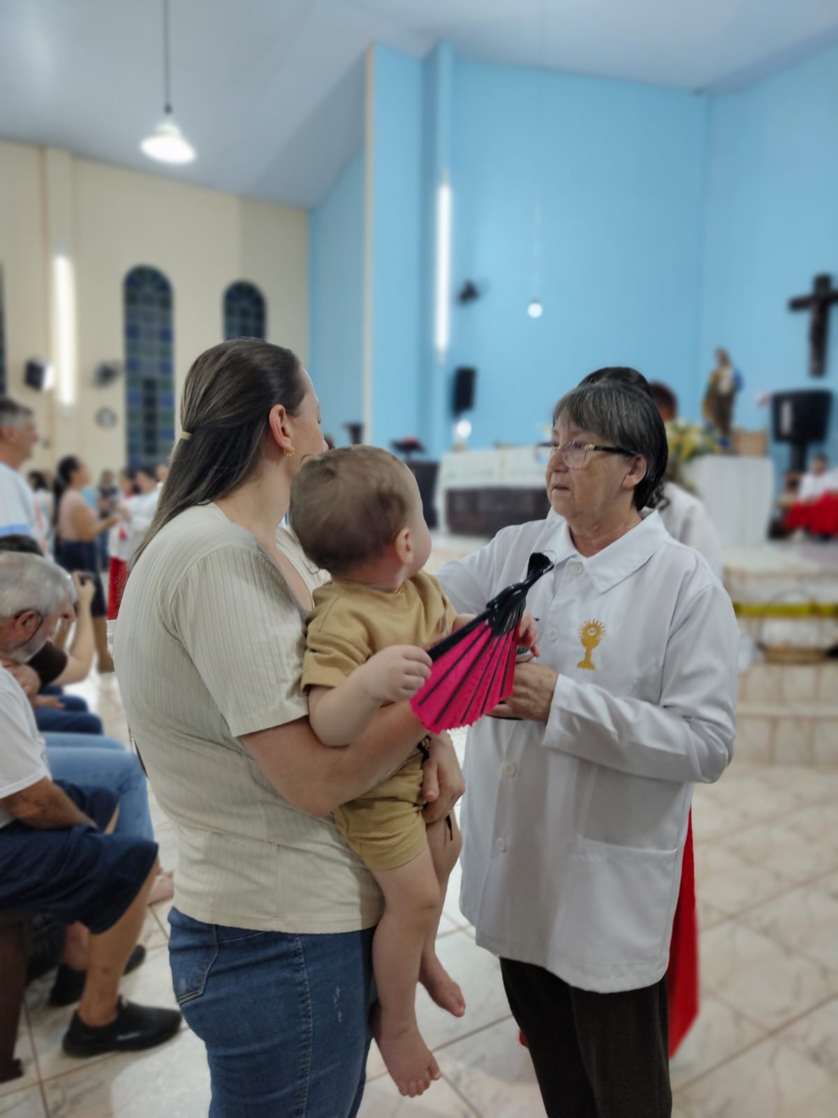 A Santa Missa foi presidida pelo Padre Rodrigo e transmitida ao vivo pela Rádio Campo Aberto, permitindo que mais pessoas acompanhassem esse momento especial.