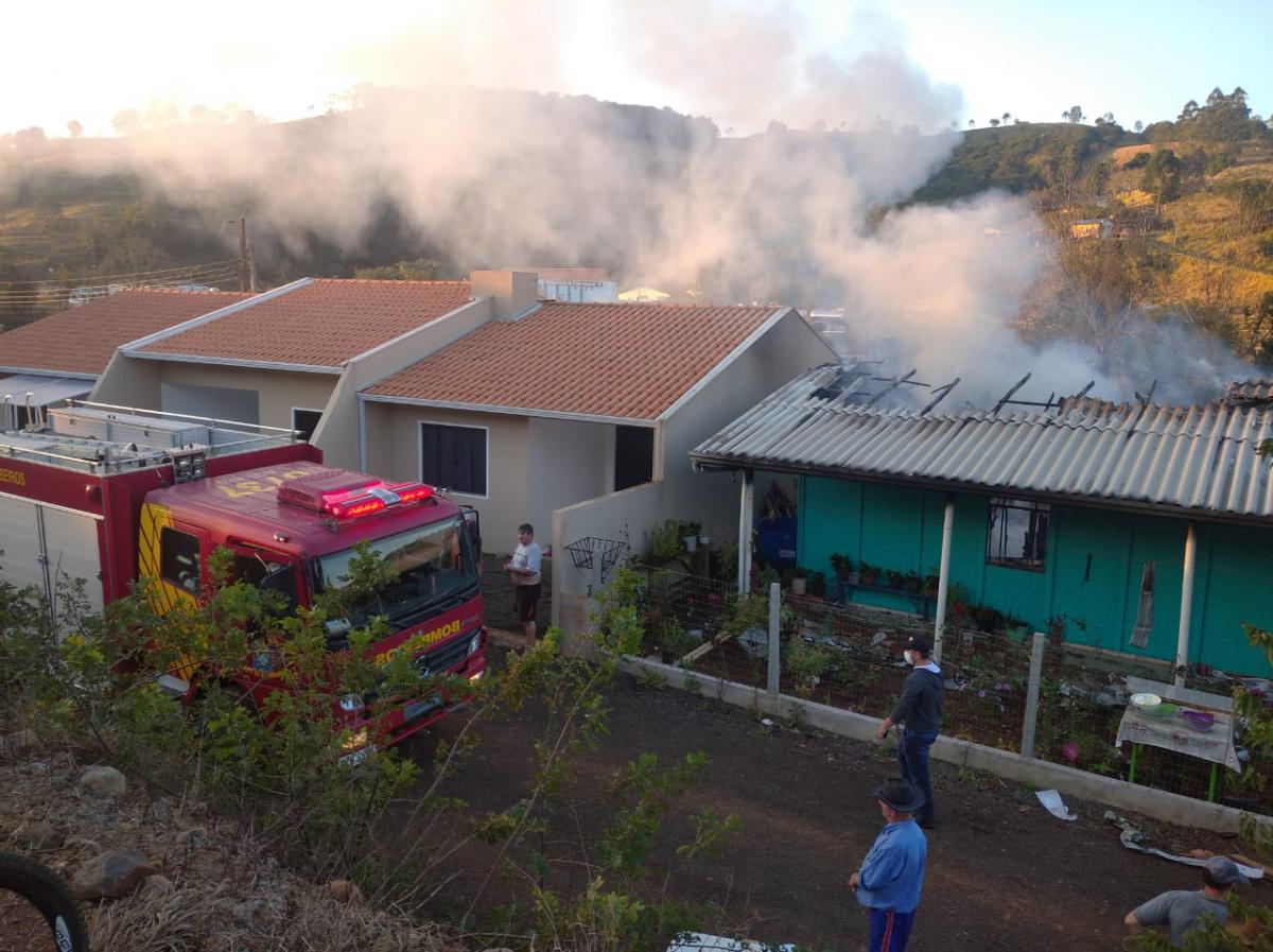 No local foi constatado que uma casa situada atrás do Restaurante Martelo pegou fogo, sendo que os bombeiros controlaram o incêndio.