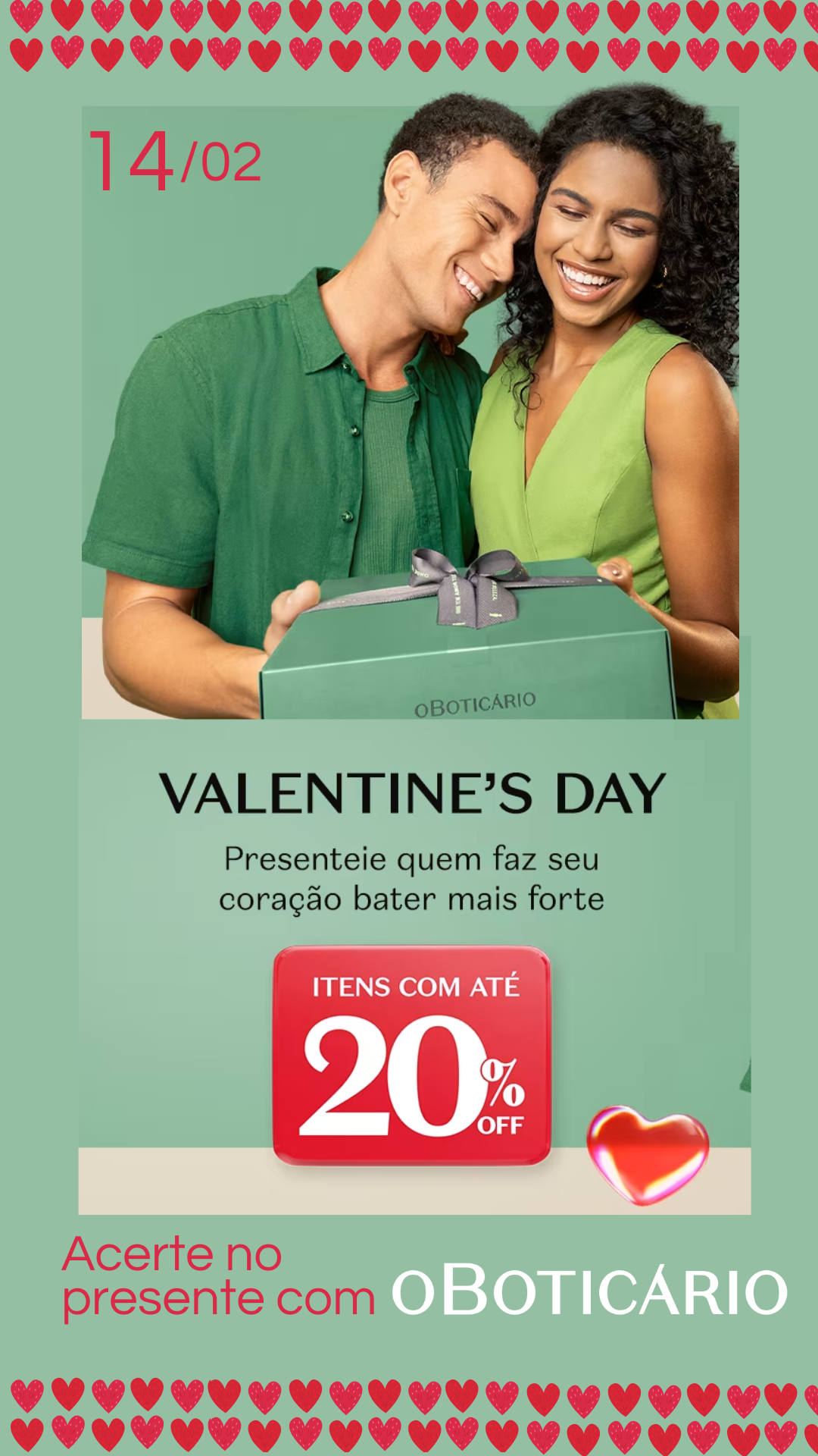O dia 14 de fevereiro marca o Valentine’s Day, data celebrada mundialmente como o Dia dos Namorados, e O Boticário preparou ofertas especiais para quem deseja surpreender com um presente cheio de significado.