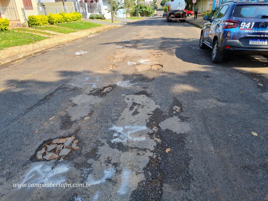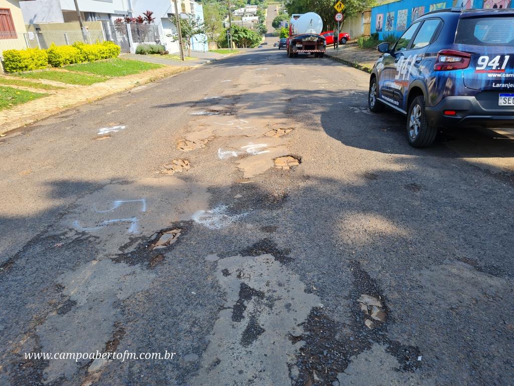 Uma equipe formada por servidores das secretarias de Obras e Viação estão percorrendo os pontos mais crÃticos da cidade, para realizar o conserto e colocar material para restaurar a via asfáltica.