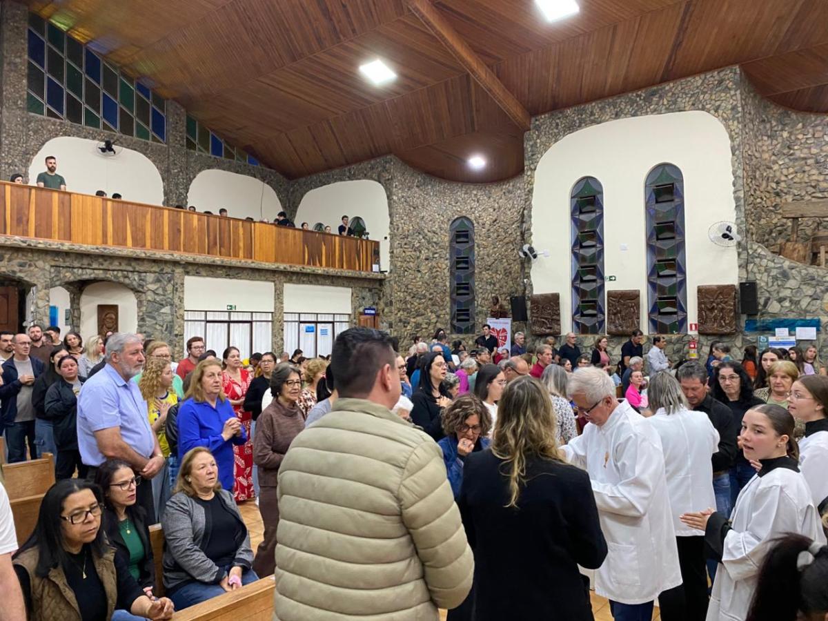 Centenas de devotos participaram da celebração, expressando sua fé por meio das orações, cantos e momentos de louvor. O clima de emoção e devoção reforçou o espírito comunitário que marca as celebrações no Santuário.