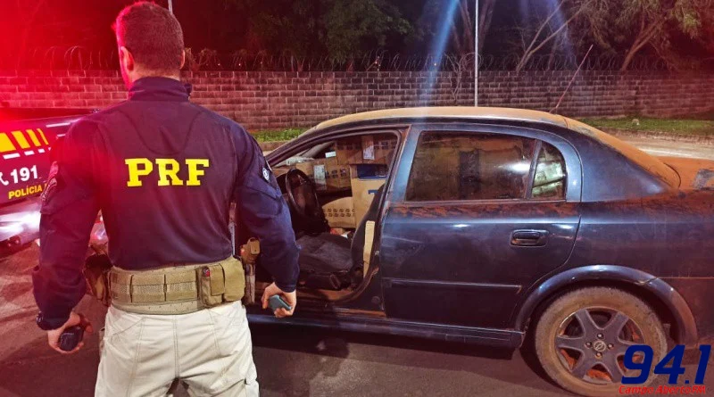 A Policia Rodoviária Federal (PRF) apreendeu, na noite de ontem (20), um carro acidentado carregado de cigarros contrabandeados. O veÃculo foi encontrado abandonado pelos policiais.
