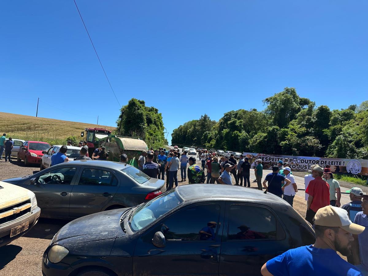 Nesta terça-feira, 14, produtores de leite e lideranças da região de Rio Bonito do Iguaçu estão realizando uma manifestação pacífica na BR-158, na entrada do Assentamento Ireno Alves dos Santos, e tem como objetivo chamar a atenção dos governos para a falta de políticas públicas voltadas ao setor leiteiro, que enfrenta uma das fases mais críticas dos últimos anos.
