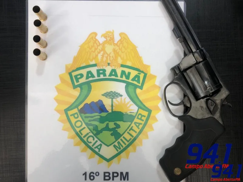 Por volta das 16h24min desta quinta-feira (05) a Policia Militar de Rio Bonito do Iguaçu deslocou até o Assentamento Ireno Alves para realizar patrulhamento de rotina, sendo que durante abordagem em um bar, foi localizado no interior de um veÃculo VW/Gol, um revólver calibre. 38 marca Taurus e 04 munições deflagradas do mesmo calibre., sendo que um homem de 24 anos, assumiu a propriedade da arma. Diante do fato foi dado voz de prisão ao mesmo, sendo o autor e a arma encaminhados até a 2ª SDP de Laranjeiras do Sul para os procedimentos cabÃveis.Â
