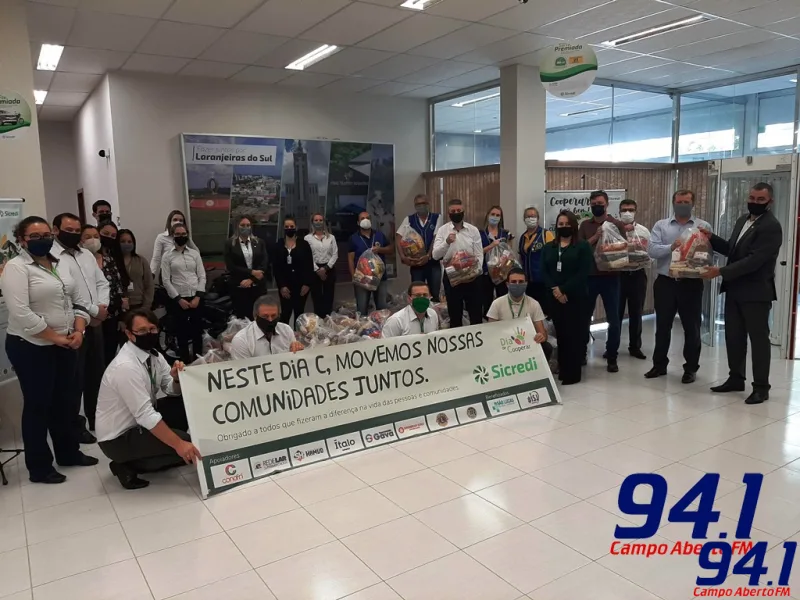 Mesmo assim, em Laranjeiras do Sul a campanha do Dia C mobilizou associados, colaboradores e a sociedade, através de doações de alimentos, material de higiene para beneficiar famÃlias carentes, além de álcool em gel, máscaras e doação em dinheiro que serão repassados posteriormente aos Hospitais São Lucas e São José. A primeira etapa da campanha de arrecadação de alimentos foi encerrada e a entrega foi feita na terça-feira, dia 23/06, com o repasse de 135 cestas de alimentos que totalizaram mais de 2 toneladas de alimentos repassados ao Lions Clube que fará a distribuição para famÃlias em situação de vulnerabilidade social de Laranjeiras do Sul.Â