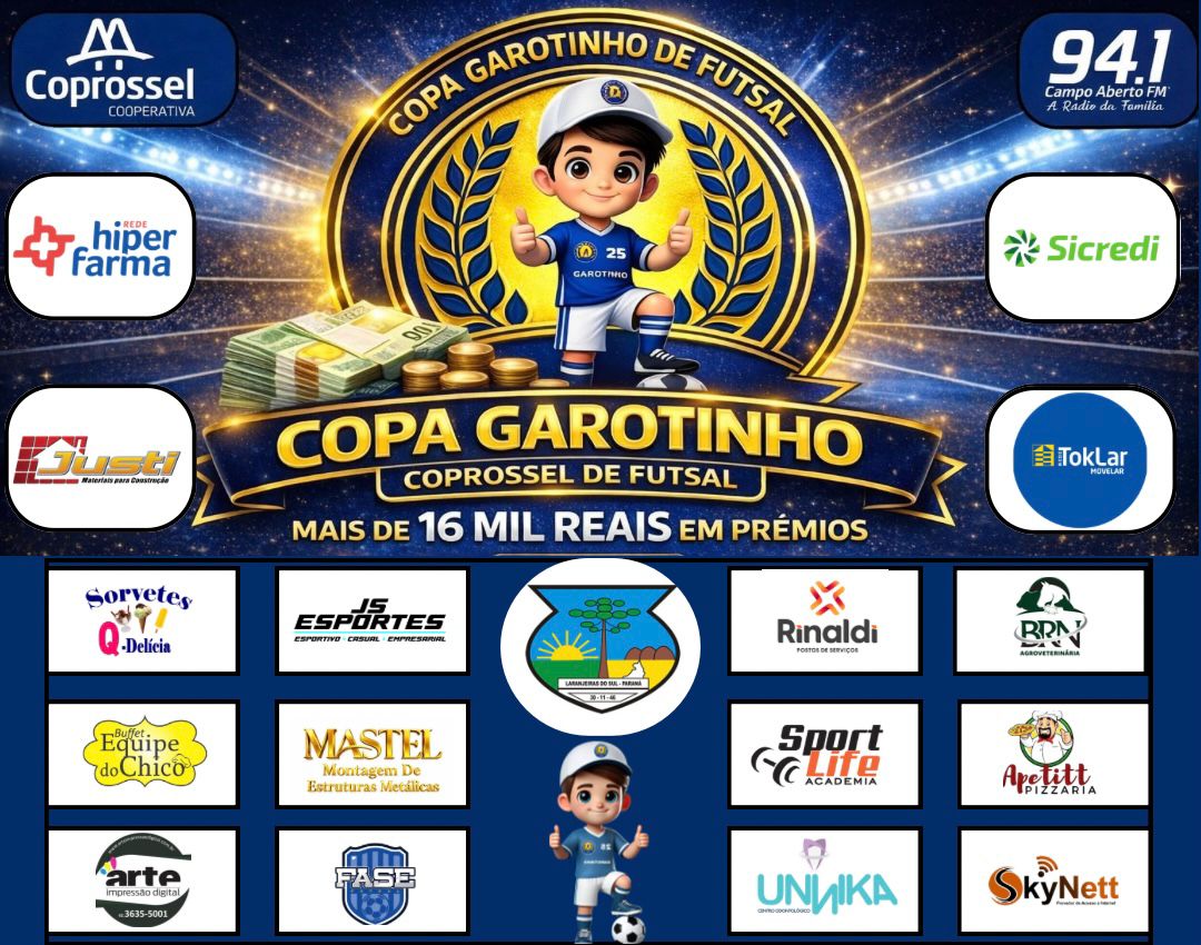 As inscrições estão abertas até o dia 7 de abril da Copa Garotinho Coprossel de Futsal 2026 – Masculino e Feminino Livre.